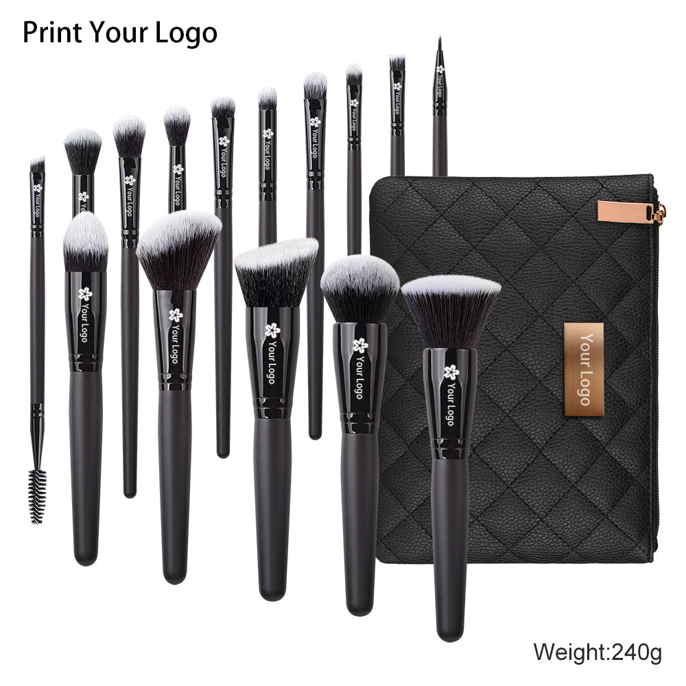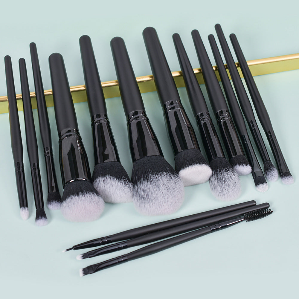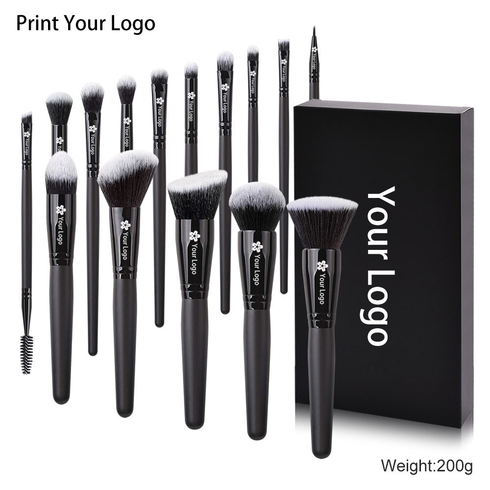 All Black 15 Pieces Professional Makeup Brushes Private Label Wholesale Makeup Brush Set Pincel Maquiagem