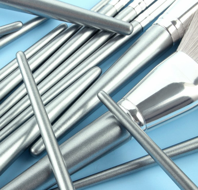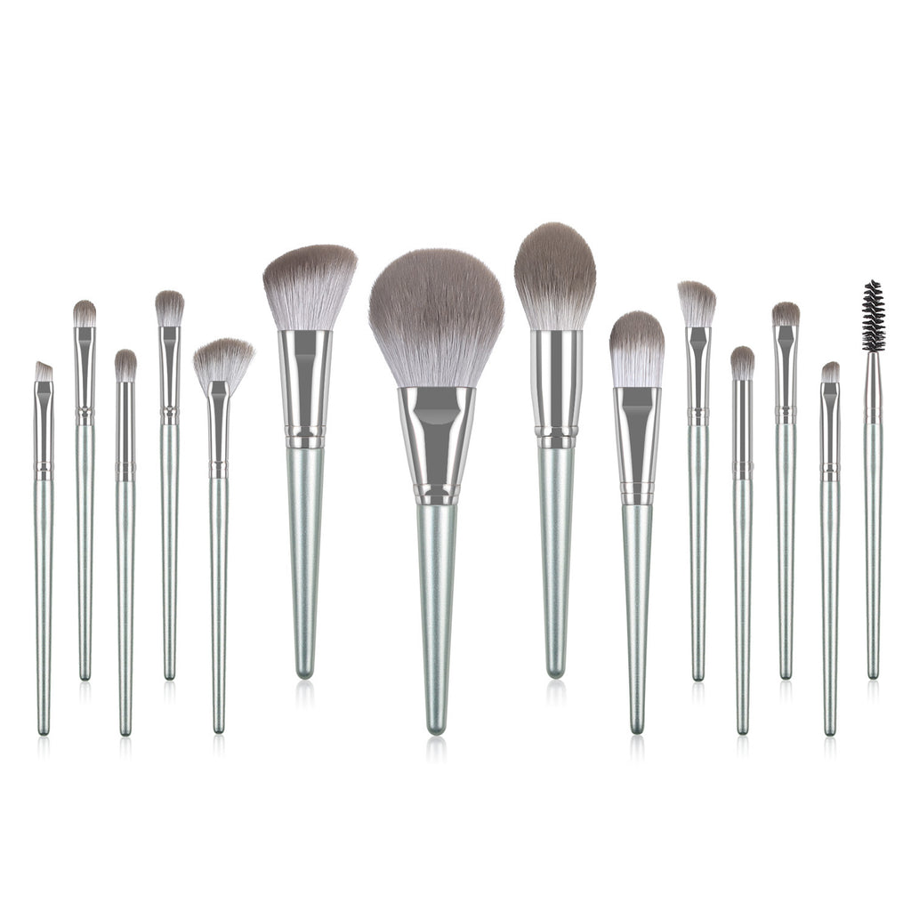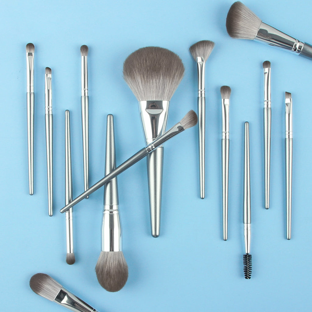 14-Piece High Quality Silver Makeup Brush Set Eye Shadow Foundation Blush & Highlighter with Powder Premium Brushes