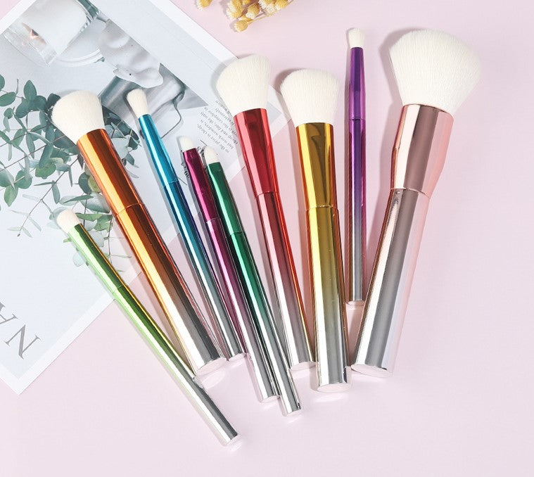 High Quality 9pcs White Nylon Hair Makeup Brush Set Newest Gradual Handle with Bling Face