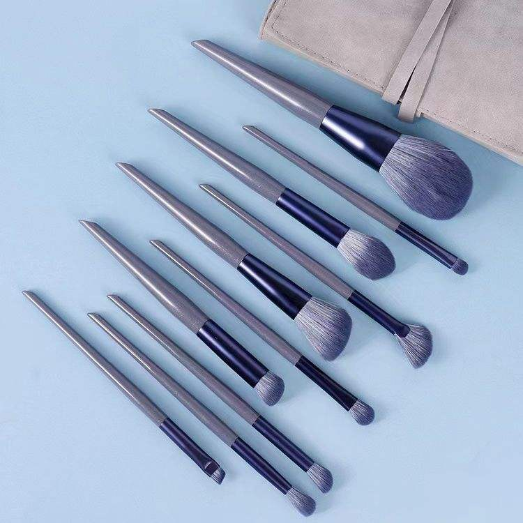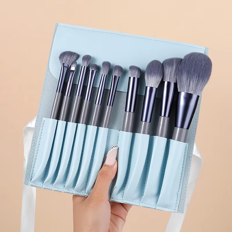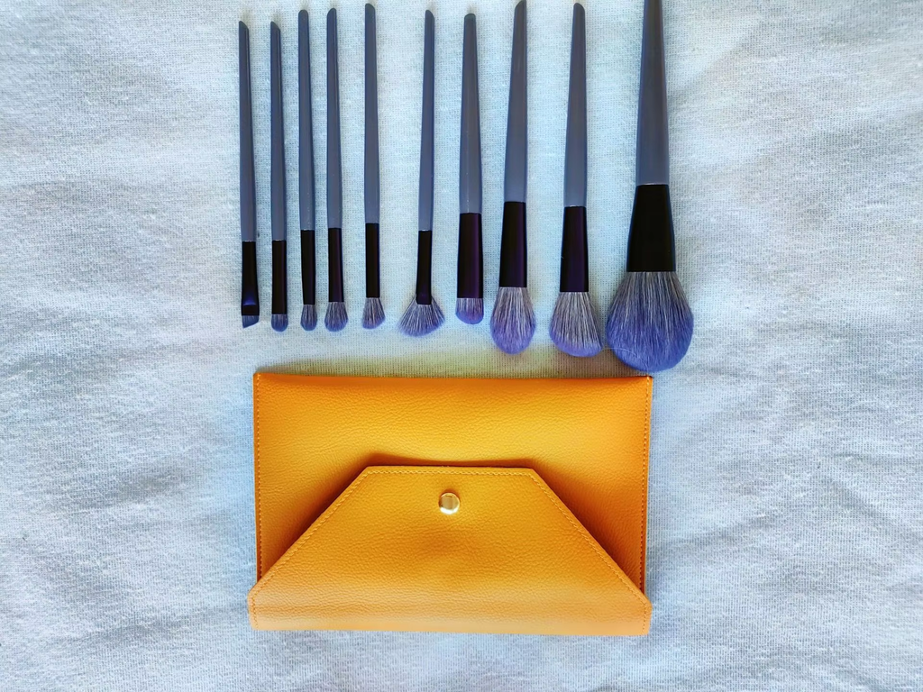 Purple Rabbit 10-Piece Synthetic Hair Makeup Brush Set for Face & Eye Shadow Angular Blush Beginners